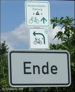 Ende des Muldentalbahn-Radwegs. Weiter geht es auf dem Muldental-Radweg!