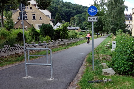Der Startpunkt des Radwegs liegt am anderen (südlichen) Muldeufer in der Rudolf-Breitscheid-Straße.