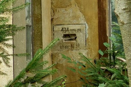 Rund 434 m über NN. Das alte Gebäude verfällt leider zusehens.