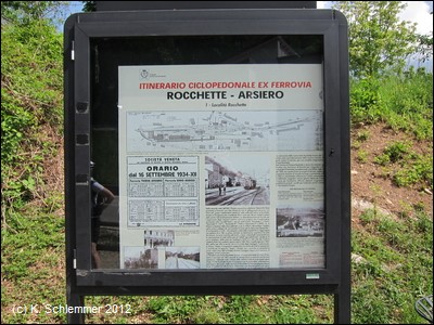 Die kleine Stadt Piovene Rocchette im Bergland Venetiens ist der Ausgangspunkt für diesen Radweg auf einer alten Bahnstrecke. Nur 6,7 km lang ist der eigentliche Radweg, der dem Verlauf des Astico-Flusses aufwärts in nordwestlicher Richtung folgt. Nördlich des Flusses liegt in rund 1000 m über dem Meer die Hochebene der Sieben Gemeinden mit der Stadt Asiago, das Ziel einer weiteren stillgelegten Eisenbahnstrecke. Die Gegend ist vom Massentourismus verschont geblieben, Unterkünfte findet man eher in den Orten Schio oder Thiene (ca. 9 km entfernt). Der Radweg nach Arsiero eignet sich zum Genussradeln, die Höhendífferenz ist gering, die Strecke für den motorisierten Verkehr gesperrt. Die Ausblicke auf die Berge Venetiens sind vom Feinsten, die Tunnel entlang des Flusses gut ausgebaut und beleuchtet. Es gibt Ruhebänke und im alten Bahnhof von Velo/Seghe befindet sich ein Restaurant. Ein weiterer Höhepunkt der Strecke ist das sehr schön restaurierte Viadukt über den Gebirgsfluss Posina am Ortseingang von Arsiero. Vom alten Bahnhof Arsiero ins Stadtzentrum geht es etwas bergauf, aber dort findet man Gelegenheit zu einer Pause in einer der Bars oder Cafes am Marktplatz.