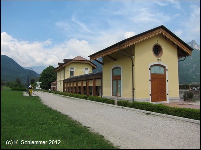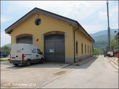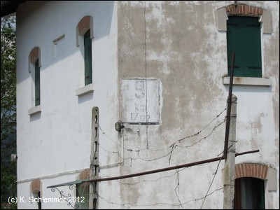 Bahnhof Seghe/Velo d'Astico, heute ausgebaut zum Restaurant. Noch zu lesen: Fahrkartenschalter und Eingang zum Stationschef.