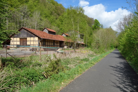 Der Radweg auf der Trasse folgt nun direkt am Ufer der Solz, ein landschaftlich schöner Abschnitt, der erst vor einigen Jahren als letzter ausgebaut wurde. Malkomes heißt der nächste Ort, dessen Bahnhof gut erhalten als Wohnhaus dient.