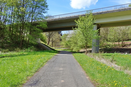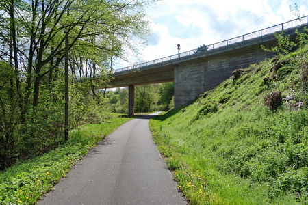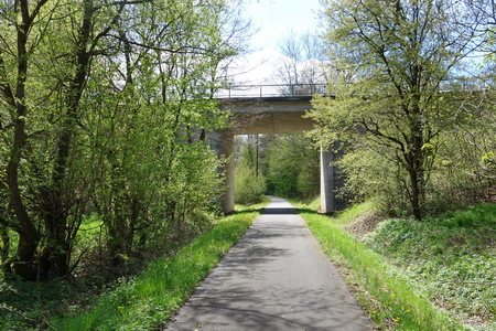 Weiter aufwärts führt ein Durchlass unter der Autobahn A4 durch. Kaum merklich steigt der Radweg weiter an.