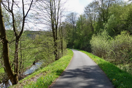 Die nächsten zwei Kilometer fährt man auf der Landstraße, ab der Einmündung bei Nippe auf einem straßenbegleitenden Verbundpflasterweg,