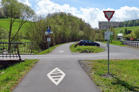 Der Verlauf des Radfernweg R1 Richtung Kassel wurde nach Wegfall der Anrufschranke geändert und führt nun etwas verlängert, aber landschaftlich schöner, zusammen mit dem Solztalradweg zum Gut Oberrode und von dort aus, abseits der Hauptverkehrsstraßen, nach Ludwigsau/Friedlos. Auch in Gegenrichtung findet man hier die Wegweiser des R1 an der Brücke der Bundesstraße 27.