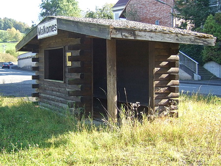 Auch eine Wartehütte ist noch an Ort und Stelle, auch wenn das Stationsschild fehlt.