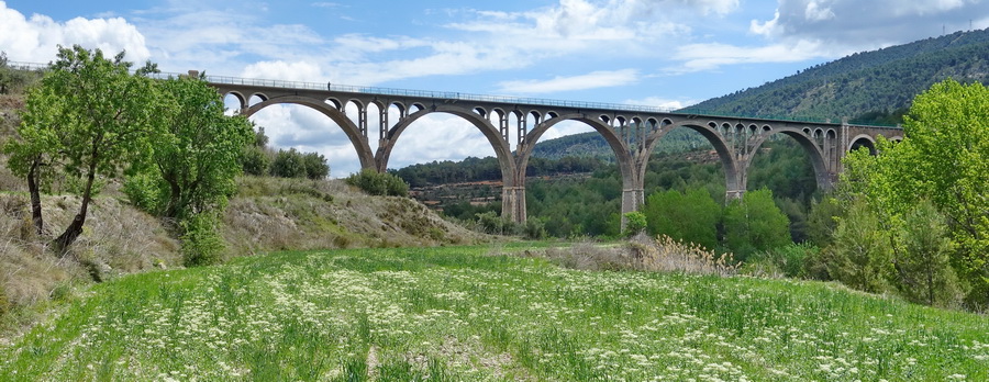 Höhepunkt des Radwegs: Das Viadukt Siete Lunas! Das Viadukt über den Río Polop, einem Nebenfluss des Río Serpis, überquert das Tal in 46 m Höhe mit 230 m (oder 260 m?) Länge.