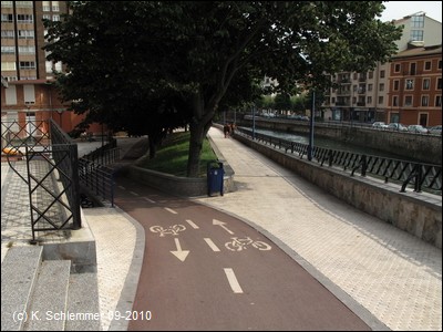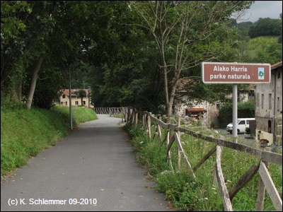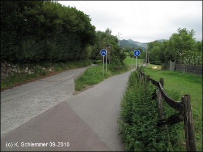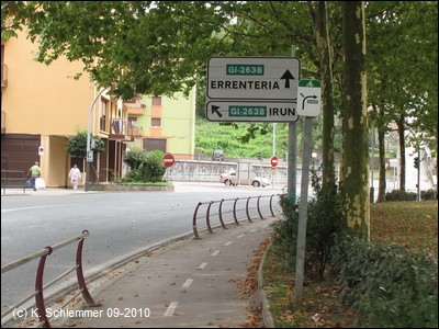 In Lezo folgt man der Radwege-Beschilderung in Richtung Errentería. Der Radweg folgt zunächst der Straße.