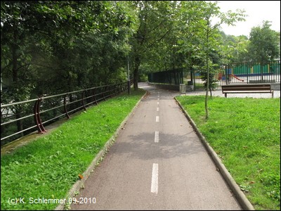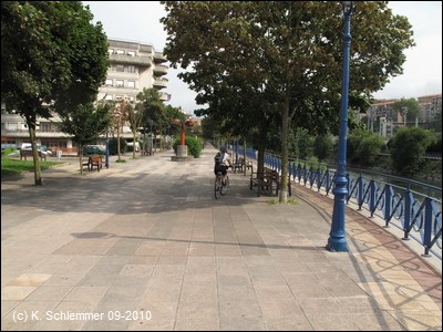 Immer am Fluss entlang, dann durch einen kleinen Park und schließlich unter den Brücken der Autobahn A8 hindurch. Der Radweg ist gut ausgebaut, eine Beschilderung nach Arditurri konnten wir bisher nicht entdecken.