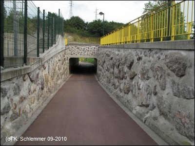 Unter der Straße durch, dann ist die Bahntrasse erreicht.