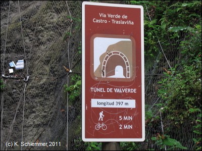 Die Vía Verde de Castro-Traslaviña endet kurz nach einem Viadukt im Dickicht, in dem die stillgelegte Bahntrasse in Richtung auf den Túnel de Herreros und die gleichnamige verlassene Ansiedlung der Mineros verschwindet. Der Tunnel ist heute wahrscheinlich intransitabel, sowohl wegen eines kurzen Einsturzes, als auch wegen einiger Überflutungen. Das Nordportal war bei unserer Tour unerreichbar wegen des Dornengewirrs und der üppigen Vegetation in diesem Gebiet. Ende 2011 waren Bestrebungen im Gang, die Vía Verde und den gesperrten Tunnel, der die Provinzen Castro Urdiales und Biscaya verbindet, auszubauen (keine weiteren Infos bis 2019).
