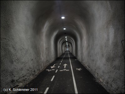 Die Fußgänger, die den Tunnel als direkte Verbindung nach Mioño nutzen, haben eine eigene Spur bekommen. Gut "erleuchtet" - so erreicht man schnell die andere Seite! (Vorsicht, Pfosten!)