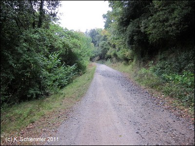 Blick zurück! Ein kurzes Stück fährt man auf einem asphaltierten Abschnitt.