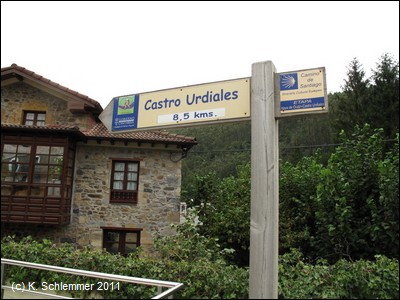 In Otañes : Auch ein Abschnitt des Jakobswegs führte durch diese Tal. Es geht weiter aufwärts auf der Trasse.