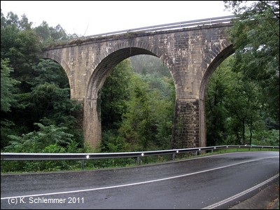 Auffahrt auf das Viaducto de los Vados: aus dem Wald heraus, über die Straße und den Rio Rucalzada.