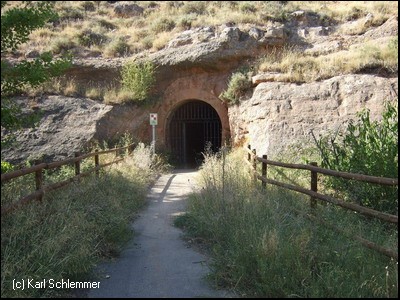 Ein Tunnel folgt, verschmutzt und voller Glasscherben. Leider gibt es hier keine Anbindung ins Tal, warum auch immer. Ende des Radwegs!