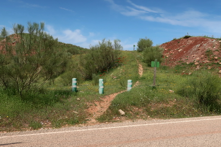 Ein beschilderter Weg (Ruta de Don Quijote) führt zum Rastplatz vor dem Tunnel.
