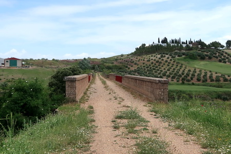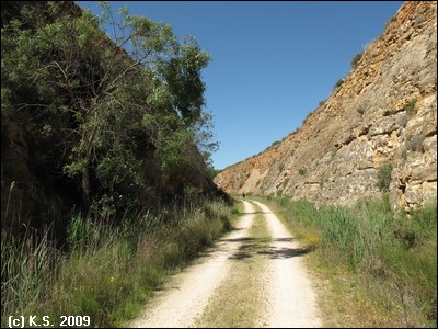 Es geht nun bergab! Eine Umfahrung führt uns unter der N-322 durch und wieder auf die Trasse (km 67). Hier folgt ein Stück schlechte Wegstrecke.