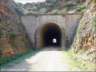 Der Tunnel von Reolid, bei Kilometer 87 des Radwegs, hat eine beachtliche Länge von 520 m und ist beleuchtet.