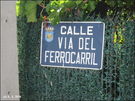 Man folgt der Straße, dann dem breiten Fahrweg in östlicher Richtung. Der Charakter einer Bahntrasse ist unübersehbar. Pelayos de la Presa ist schnell erreicht, hier hat man Gewissheit: