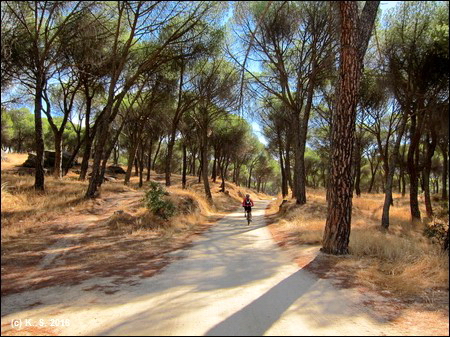 In der kleinen Gemeinde San Martín de Valdeiglesias (ca. 8000 Einwohner.), in den Bergen 70 km westlich von Madrid, beginnt ein Radweg auf einer nie ganz fertiggestellten Bahnlinie. Dieser "nicht ausgebaute Radweg" entlang des Río Alberche, für alle Radler gut befahrbar, zeichnet sich durch die besondere landschaftliche Schönheit aus. Der Río Alberche, ein Nebefluss des Tajo, durchquert die Täler der Ausläufer der Sierra de Gredos. In seinem Verlauf ist er mehrfach aufgestaut und schlängelt sich danach im Unterlauf durch eine weite Wiesenlandschaft. Nach über 180 km erreicht er schließlich die Stadt Talavera de la Reina, wo er in den Rio Tajo mündet. Die Auen um den Ort Aldea del Fresno werden auch heute noch umgangssprachlich als "Playas de Madrid" bezeichnet, da viele Wochenendausflügler aus der Großstadt hier Erholung suchten.