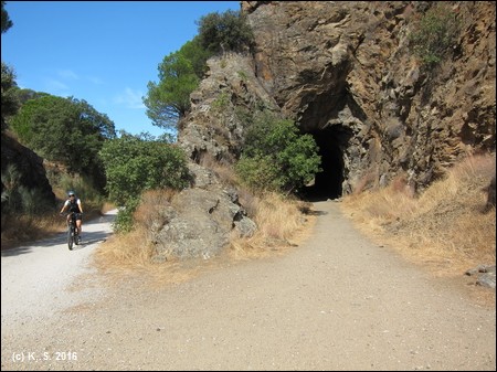 Dann liegt der einzige Tunnel dieser Strecke vor uns: Ein grob aus dem Felsen gehauener Stollen.