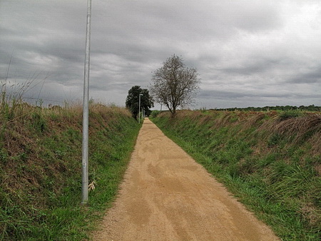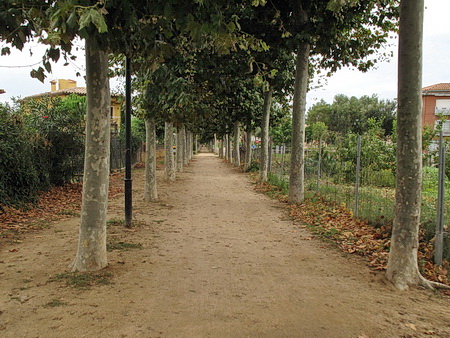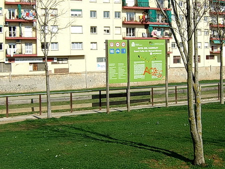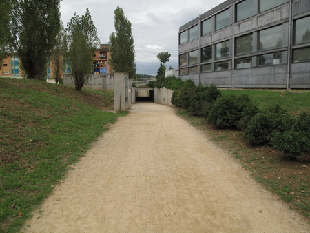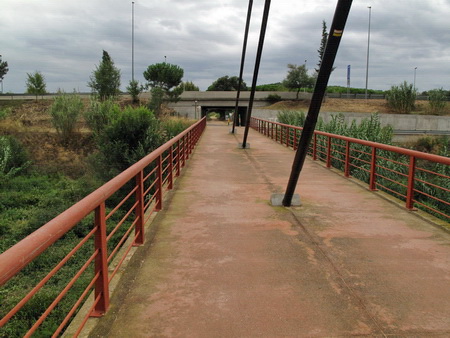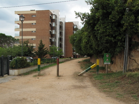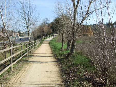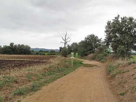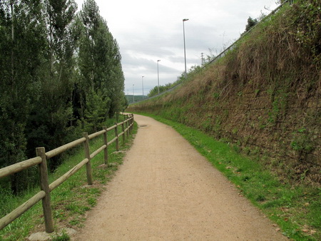 Zunächst am Hang entlang oberhalb des Rio Onyar, dann durch die Vororte von Girona. Zunächst geprägt von Industriegebieten, wird die Landschaft aber schon bald wieder angenehm.