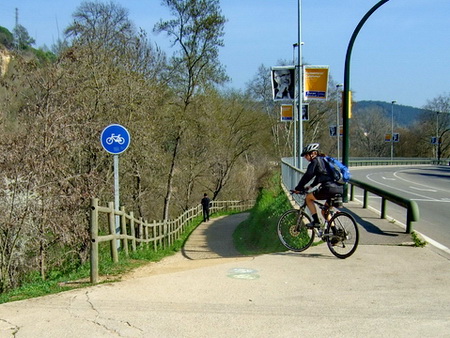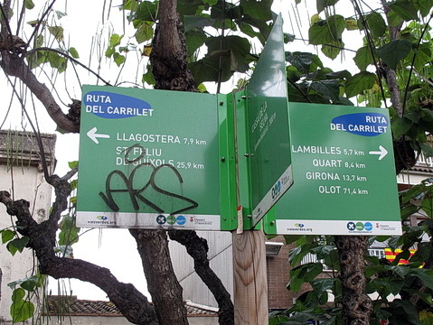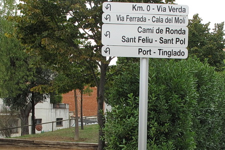 Die Vía Verde del Carrilet von Olot nach Girona ist nach 56 Kilometern nicht zu Ende. Allerdings muss man vom alten Bahnhof des ersten Abschnitts durch die Stadt hinab zum Fluss Onyar fahren. Auch der zweite Abschnitt der Vía Verde del Carrilet - von Girona nach Sant Feliu de Guixols - verläuft auf einer längst stillgelegten Bahntrasse, allerdings waren dies anfangs getrennte Bahnstrecken mit unterschiedlicher Spurbreite. Heute kann man diese Bahntrassen aus dem Vorland der Pyrenäen zur Costa Brava komplett befahren. Die 41 Kilometer lange Strecke bietet kaum Schwierigkeiten, denn es ist nur ein geringer Höhenunterschied zu überwinden: Von Girona, 75 Meter über dem Meer, zum Scheitelpunkt bei etwa 150m (Llagostera), hat man etwa die Hälfte der Strecke (21 km) zur Verfügung. Die Vía Verde ist mit jedem alltagstauglichen Fahrrad befahrbar. Allerdings ist die Fahrbahn ist nicht asphaltiert, und Unwetter können dem Radweg heftig zusetzen. Die Gesamtlänge von knapp hundert Kilometern ist für einen Tag reichlich lang, wenn man auch die Gegend entdecken will. Die Rückfahrt mit dem Linienbus ist möglich, den Fahrradtransport sollte man vor Fahrtbeginn abklären.