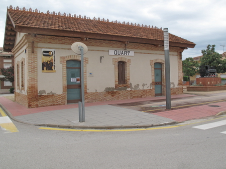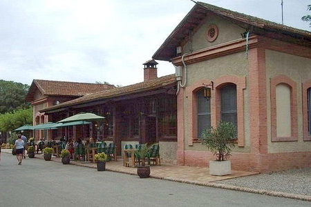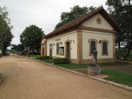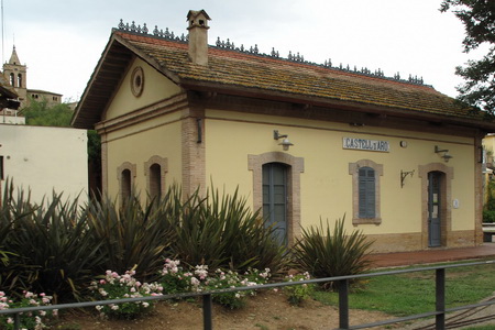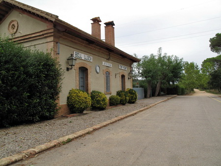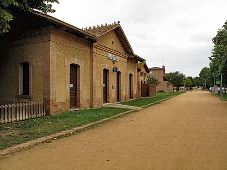 Der Ort Llagostera kommt in Sicht. Auch hier wieder ein restauriertes Bahnhofsgebäude. Dort befindet sich die Touristeninformation.