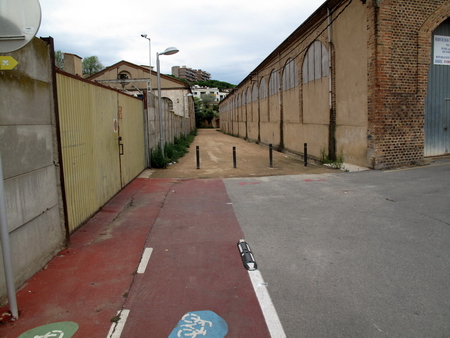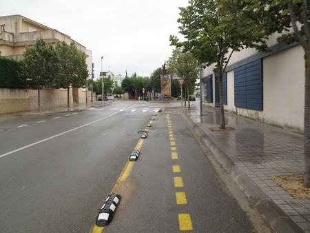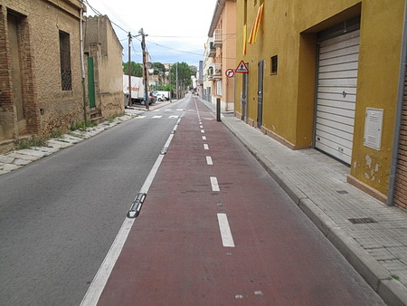 In Cassa de la Selva wurde der Radweg auf der Straße markiert. Auch hier geht es am Bahnhof vorbei.