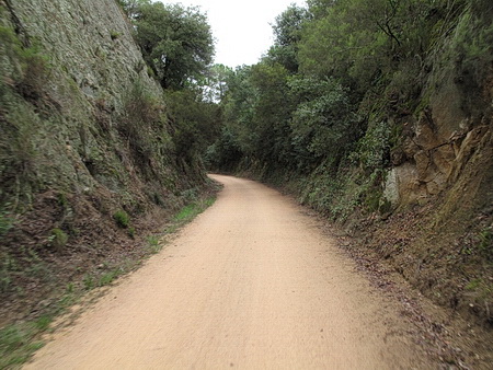 Tiefe Einschnitte in die Felsen prägen die Abfahrt durch das Bergland der Gavarres, genannt "Höllenfelsen".