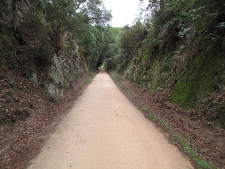 Die Schmalspurstrecke Girona - Sant Feliù de Guíxols (Spurbreite 75 cm) wurde 1892 in Betrieb genommen. Sie diente über Jahre dem Personentransport von Girona zu den Stränden am Mittelmeer bei Sant Feliù. Aber auch der Güterverkehr von Kork und Korkprodukten, sowie von landwirtschaftlichen Erzeugnissen (z.B. Mehl) spielte eine wichtige Rolle in der Region der Baix Empordà. Wie anderswo auch verdrängte der Autoverkehr die Eisenbahn, so dass bedingt durch den Rückgang der Passagierzahlen und der folgenden finanziellen Probleme die Bahnlinie 1963 vom Staat übernommen wurde. Jedoch konnte die Modernisierung und der Umbau auf Meterspur zur Anbindung an die Linie Girona- Olot die Entwicklung nicht aufhalten. Die Bahnstrecke Girona nach Sant Feliu wurde 1969 endgültig stillgelegt. Der Radweg auf der Trasse ist seit dem Jahr 2000 freigegeben, in den Folgejahren wurden immer wieder Instandhaltungsmaßnahmen und Verlaufskorrekturen durch den Ausbau der Hauptverkehrsstraßen und die zunehmende Bebauung in den Ortschaften durchgeführt.