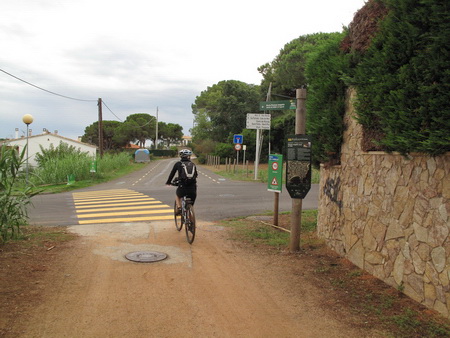 Auf der Straße ist ein Fahrradstreifen markiert, später gibt es wieder einen vom Verkehr getrennten Fahrradweg. Noch 1 km bis zum Ziel in Sant Feliu.