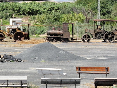 Der Ort mit seiner großen Kirche liegt etwas abseits der Bahnstrecke. Weiter talwärts neben der Trasse kommt man an einem Lager für alte Maschinen vorbei - fast ein Museum!