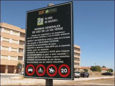 Die Beschilderung ist Vías- Verdes- konform und gut zu erkennen, wenn sie nicht durch Vandalismus zertstört ist.