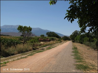 Der Blick zurück lässt die Gipfel der Sierra del Moncayo erkennen, die über 2300 m in den Himmel ragen. Richtung Tudela geht es eher ruhig voran.