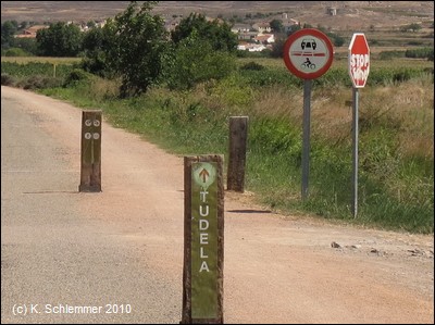 Einige Schilder sind kaum noch zu lesen. Wir überqueren den Canal de Lodosa.