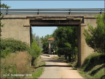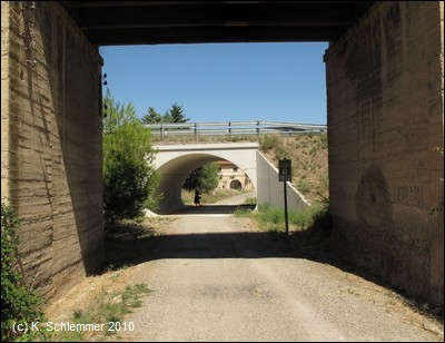 Wieder unter einer alten Brücke durch, dann wird die Autobahn A-68 unterquert. Noch einmal folgt eine Unterführung.