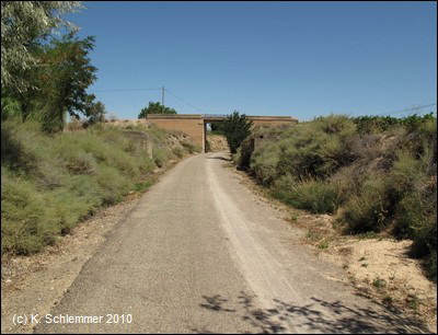 Dann geht es unter der Autobahn AP-68 hindurch. Noch 5 Kilometer bis zum Bahnhof Tudela.