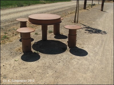 Am Rastplatz bei der Brücke soll ein originelles Tischensemble und ein Kunstwerk an die Eisenbahn erinnern.