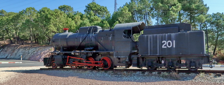 Schlepptenderlok 201 (Stephenson & Hawthorns) am Kreisel El Calero in Rio Tinto (Bj. 1953 / 1954), bis etwa 1983 in Betrieb