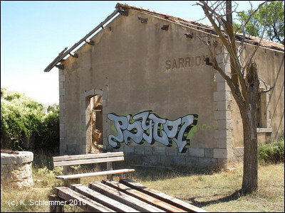 Die Ruine eines alten Hauses trotzt dem Zahn der Zeit. Die neuen Unterführungen sind immer gut für eine Überraschung! Am alten Bahnhof von Caudé ist ein Rastplatz entstanden, nicht wirklich gemütlich und keinerlei Schatten.