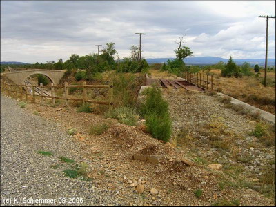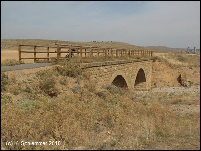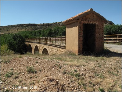 Bei Kilometer 55 vor Ojos Negros wird der Rio Alfambra überquert. Zuerst geht es unter der Straße durch, dann auf der alten Brücke über den Fluss.