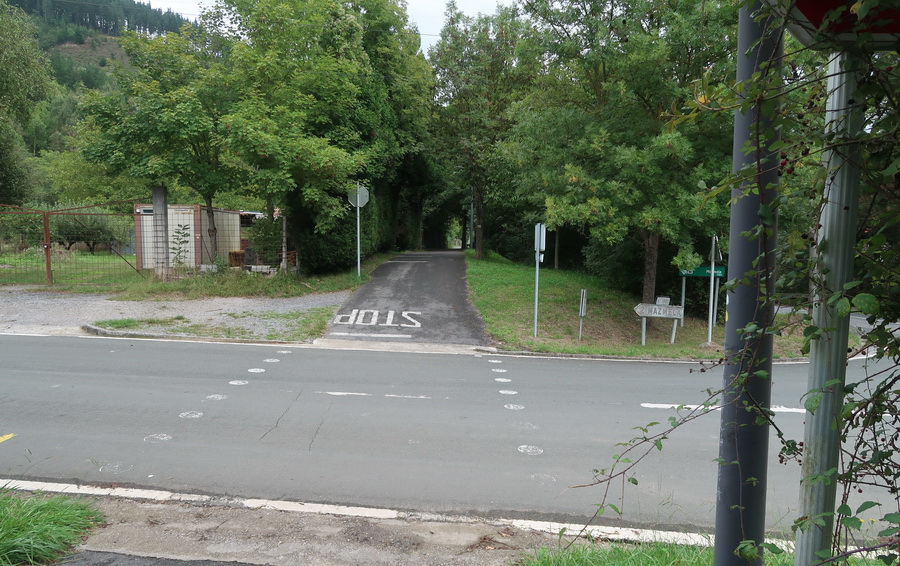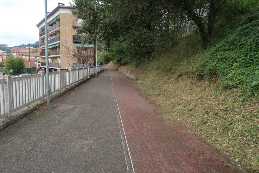 Jenseits der Passhöhe von Arlabán gibt es zunächst keinen Radweg mehr, ein Ausbau hat bisher nicht stattgefunden. Wer weter will muss auf der Straße fahren, empfohlen wird die GI-627. Im September 2024 war diese Strecke wegen Bauarbeiten gesperrt. Wir nahmen die Alternativstrecke über Leintz-Gatzaga. Starkes Gefälle erwarten wir ohnehin, denn die ehemalige, nicht ausgebaute Bahnstrecke soll 14 Brücken und vier Tunnel enthalten. So bleiben 8,7 km auf der Autostraße mit reichlich Verkehr (ggf. hin und zurück.), als Radtour für Familien mit Kindern weniger geeignet. Die offizielle Seite hofft auf baldigen Ausbau der Trasse, seit 2010 hat sich hier aber nicht bewegt, weitere Infos haben wir nicht gefunden.