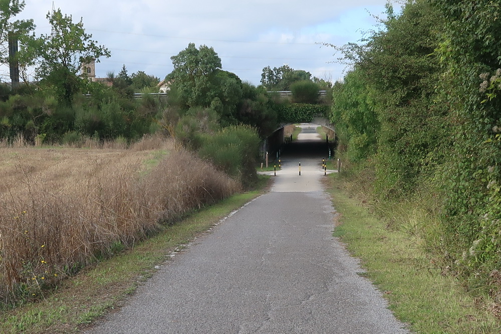 So folgen wir der Gi-3310 und treffen nach wenigen Metern auf die alte Bahntrasse. Doch diese Straße ist eine Sackgasse, und so heißt es zurück zur Landstraße.