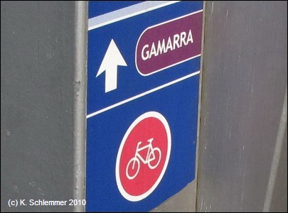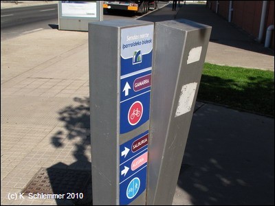 In Vitoria-Gasteiz folgt man dem Radweg ab der Calle Madrid in nordöstlicher Richtung. Die Beschilderung ist auf Metallpfosten angebracht und wegen der kleinen Schrift für Radfahrer im Vorbeifahren schlecht zu lesen.