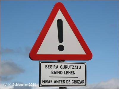 Vorsicht bei der Straßenüberquerung in Durana, danach ein erstklassiger Radweg.