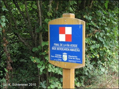 Die Strecke ist als Vía Verde del Ferrocarril Vasco-Navarro beschildert und nicht als Vía Verde del Zadorra.