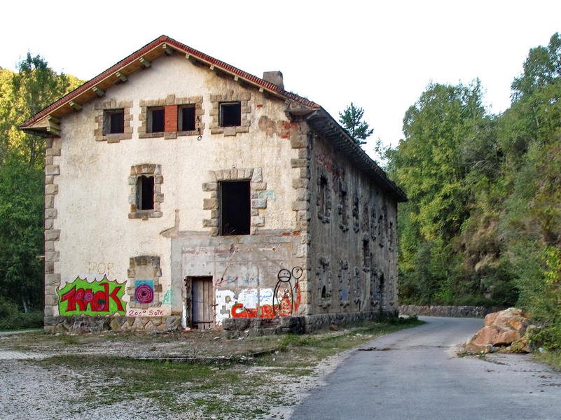 Zwei alte Steinbrücken überqueren die Trasse: Die eine Brücke dient als Zugang zum Dorf, die andere ist die Brücke der Bahnstrecke nach Bilbao.
