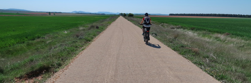 Wir treten die Rückfahrt an. Man kann der Bahnlinie aber offenbar auf einem Feldweg weiter folgen. Die nächsten verlassenen Bahnhöfe sind Torrelapaja und Malanquilla (Haltepunkt). Nach Calatayud fehlen noch, wie die Kilometrierung verrät, noch ca. 46 km, wobei von Torralba de Ribota aus bereits ein ca. 7 km langer Radweg existiert. Natürlich hoffen wir auf einen raschen Weiterbau des Radwegs auf der Bahntrasse.